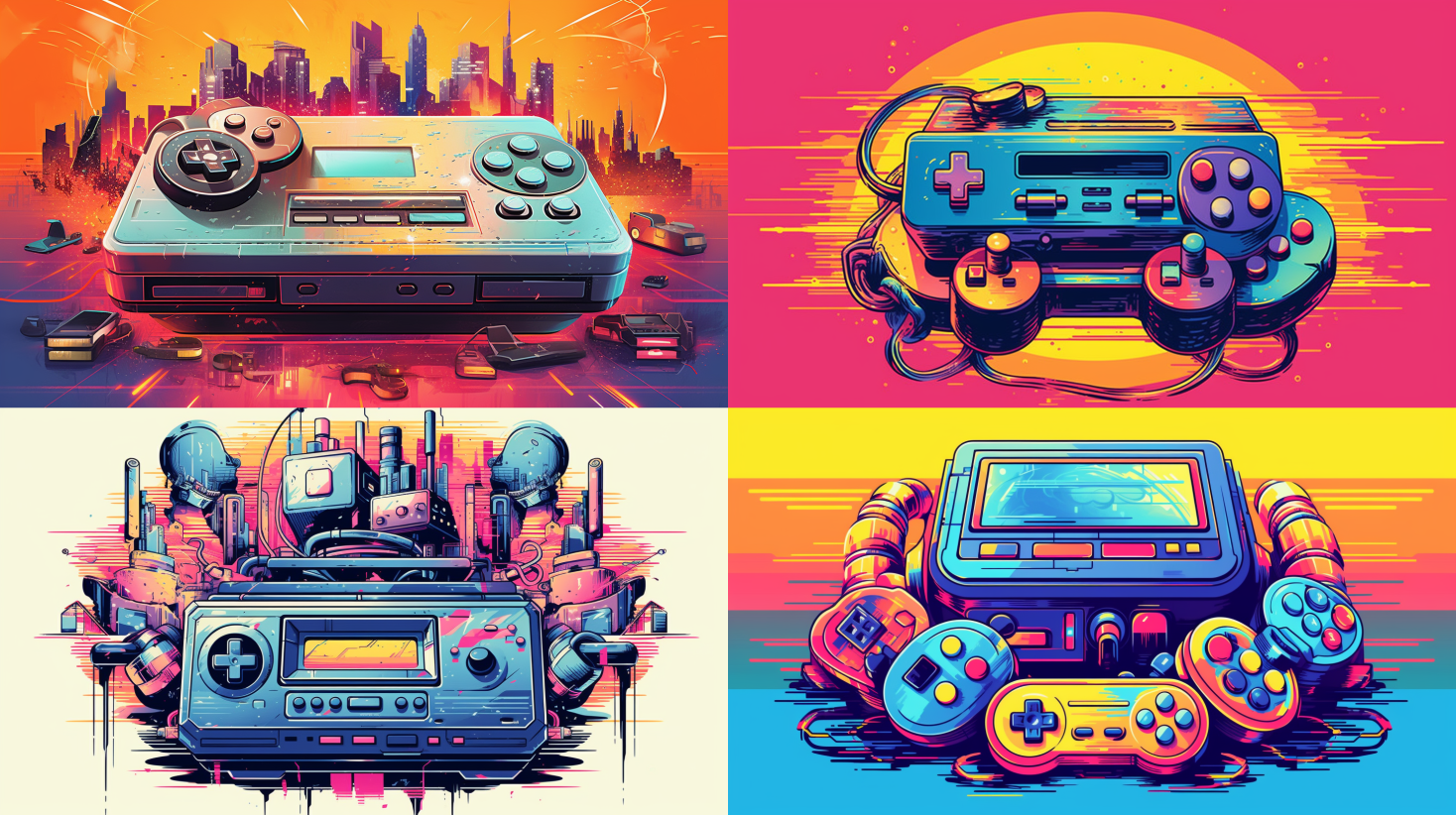 A retro-futuristic depiction of a video game console from the past, combining vintage aesthetics with futuristic elements. Medium: digital illustration. Style: retropunk with vibrant colors and pixel art-inspired graphics. Composition: showcasing the iconic design of the console, with retro-inspired controllers and futuristic details. --ar 16:9 --v 5.1 --style raw --q 2 --s 750A retro-futuristic illustration of a rocketship, featuring sleek lines, metallic finishes, and retro-inspired motifs. Medium: acrylic painting. Style: retropunk with a vibrant color palette. Composition: capturing the nostalgia of retro science fiction, with the rocketship launching into space against a backdrop of stars. --ar 16:9 --v 5.1 --style raw --q 2 --s 750A retropunk interpretation of a cyberpunk cityscape, combining retro elements with futuristic technology. Medium: digital painting. Style: retropunk with neon lights, vibrant colors, and a mix of retro and futuristic architecture. Composition: capturing the bustling streets, towering buildings, and the interplay of light and shadow in a retro-futuristic city. --ar 16:9 --v 5.1 --style raw --q 2 --s 750A retro-inspired illustration of a futuristic radio device, featuring analog dials, sleek curves, and vintage-inspired materials. Medium: mixed media (digital and hand-drawn elements). Style: retropunk with warm colors and metallic finishes. Composition: showcasing the retro-futuristic design of the radio, with a combination of analog and digital displays. --ar 16:9 --v 5.1 --style raw --q 2 --s 750A retropunk depiction of a futuristic car, combining vintage automotive design with futuristic elements. Medium: digital illustration. Style: retropunk with sleek lines, vibrant colors, and chrome details. Composition: showcasing the retro-futuristic design of the car, with distinctive features and futuristic technology integrated seamlessly. --ar 16:9 --v 5.1 --style raw --q 2 --s 750A retropunk interpretation of a futuristic city skyline, inspired by retro science fiction art and architecture. Medium: acrylic painting. Style: retropunk with a vibrant color palette and retro-futuristic buildings. Composition: capturing the grandeur and complexity of a retro-futuristic city, with towering skyscrapers, flying vehicles, and retro-inspired technology. --ar 16:9 --v 5.1 --style raw --q 2 --s 750A retropunk illustration of a bustling arcade scene, featuring vintage arcade machines, neon lights, and nostalgic gaming motifs. Medium: digital painting. Style: retropunk with vibrant colors, pixel art-inspired graphics, and retro gaming characters. Composition: capturing the energy and excitement of a retro arcade, with gamers, flashing lights, and rows of arcade cabinets. --ar 16:9 --v 5.1 --style raw --q 2 --s 750A retropunk representation of a futuristic space exploration scene, inspired by retro science fiction illustrations. Medium: mixed media (digital and hand-drawn elements). Style: retropunk with bold colors, retro-inspired spaceship designs, and futuristic technology. Composition: capturing the sense of adventure and discovery in space, with retro-futuristic spaceships, celestial bodies, and vibrant cosmic landscapes. --ar 16:9 --v 5.1 --style raw --q 2 --s 750A retropunk illustration of a futuristic DJ set, blending vintage DJ equipment with futuristic design elements. Medium: digital illustration. Style: retropunk with neon lights, bold colors, and a mix of retro and futuristic fashion. Composition: showcasing the retro-futuristic DJ setup, with vinyl turntables, analog synthesizers, and holographic displays. --ar 16:9 --v 5.1 --style raw --q 2 --s 750A retropunk interpretation of a futuristic street scene, combining retro aesthetics with advanced technology. Medium: acrylic painting. Style: retropunk with a vibrant color palette, neon lights, and retro-futuristic fashion. Composition: capturing the energy and diversity of a retropunk city street, with futuristic vehicles, retro-inspired storefronts, and bustling crowds. --ar 16:9 --v 5.1 --style raw --q 2 --s 750A retropunk illustration of a futuristic gaming console, blending vintage gaming aesthetics with cutting-edge technology. Medium: digital painting. Style: retropunk with bold colors, retro-inspired controllers, and holographic displays. Composition: showcasing the retro-futuristic design of the gaming console, with sleek lines, metallic finishes, and retro gaming references. --ar 16:9 --v 5.1 --style raw --q 2 --s 750A retropunk representation of a futuristic city skyline at night, combining retro elements with advanced technology. Medium: digital illustration. Style: retropunk with vibrant neon lights, bold colors, and a mix of retro and futuristic architecture. Composition: capturing the luminous beauty and dynamic energy of a retropunk cityscape at night, with glowing skyscrapers, flying vehicles, and bustling streets. --ar 16:9 --v 5.1 --style raw --q 2 --s 750A retropunk depiction of a futuristic spacecraft, inspired by retro science fiction art and space exploration concepts. Medium: mixed media (digital and hand-drawn elements). Style: retropunk with a mix of sleek lines, retro aesthetics, and futuristic technology. Composition: showcasing the retro-futuristic design of the spacecraft, with streamlined shapes, retro-inspired details, and advanced propulsion systems. --ar 16:9 --v 5.1 --style raw --q 2 --s 750A retropunk representation of a futuristic time travel scene, blending retro aesthetics with advanced temporal technology. Medium: acrylic painting. Style: retropunk with a blend of vintage and futuristic elements. Composition: capturing the intrigue and sense of wonder in time travel, with retro-futuristic time machines, swirling portals, and a mix of past and future environments. --ar 16:9 --v 5.1 --style raw --q 2 --s 750A retropunk illustration of a futuristic synthesizer, combining vintage analog aesthetics with futuristic design elements. Medium: digital illustration. Style: retropunk wi