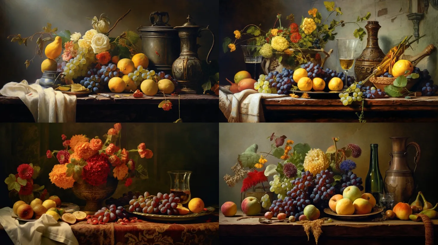 An intricate and detailed still life composition featuring everyday objects like fruits, flowers, and household items. Medium: oil painting. Style: classical realism. Lighting: natural light casting soft shadows and emphasizing texture. Colors: a mix of warm and cool tones, capturing the subtleties of light and color. Composition: highlighting the precision and accuracy in depicting the objects with meticulous attention to detail. --ar 16:9 --v 5.1 --style raw --q 2 --s 750A sweeping landscape showcasing a breathtaking view of nature, such as mountains, forests, or seascapes. Medium: acrylic painting. Style: contemporary realism. Lighting: capturing the natural lighting conditions of the scene, with shadows and highlights creating depth and dimension. Colors: a harmonious blend of natural hues, capturing the atmospheric effects of distance and lighting. Composition: drawing the viewer into the vastness and beauty of the natural landscape. --ar 16:9 --v 5.1 --style raw --q 2 --s 750A realistic portrait capturing the innocence and personality of a child. Medium: graphite drawing. Style: classical portrait. Lighting: soft, diffused lighting to create gentle shadows and emphasize facial features. Colors: black and white, focusing on tonal values and subtle variations of light and shadow. Composition: highlighting the child's unique expressions and capturing the essence of their character. --ar 16:9 --v 5.1 --style raw --q 2 --s 750A close-up depiction of a single flower, emphasizing its delicate petals and intricate details. Medium: watercolor painting. Style: botanical realism. Lighting: soft, diffused light to reveal the flower's natural beauty and subtle gradients. Colors: a mix of vibrant floral hues, capturing the translucency and depth of the petals. Composition: drawing attention to the flower's intricate structures and capturing its unique characteristics. --ar 16:9 --v 5.1 --style raw --q 2 --s 750A realistic portrait capturing the likeness and personality of a beloved pet. Medium: colored pencils. Style: hyperrealism. Lighting: natural lighting casting gentle shadows and emphasizing the pet's features. Colors: a blend of natural fur colors, capturing the pet's unique markings and textures. Composition: focusing on the pet's expressive eyes and capturing the essence of their character. --ar 16:9 --v 5.1 --style raw --q 2 --s 750A realistic depiction of a serene beach or coastal landscape, capturing the play of light and shadow on the sand and water. Medium: oil painting. Style: impressionistic realism. Lighting: natural lighting creating reflections and highlighting the textures of the beach and water. Colors: a mix of warm coastal hues, capturing the changing colors of the sea and sky. Composition: conveying a sense of tranquility and the vastness of the seaside environment. --ar 16:9 --v 5.1 --style raw --q 2 --s 750A close-up depiction of architectural elements, such as intricate ornaments, columns, or facades of historic buildings. Medium: pen and ink. Style: architectural realism. Lighting: capturing the play of light and shadow on the architectural details, revealing their texture and depth. Colors: black and white, focusing on intricate line work and shading. Composition: highlighting the precision and craftsmanship of the architectural details, capturing the grandeur and historical significance of the building. --ar 16:9 --v 5.1 --style raw --q 2 --s 750An intricate still life composition featuring glassware, such as wine glasses or crystal vases, capturing the reflective surfaces and delicate translucency. Medium: acrylic painting. Style: contemporary realism. Lighting: creating highlights and reflections on the glass surfaces, showcasing their transparency and luminosity. Colors: a mix of subtle hues and vibrant reflections, capturing the play of light on glass. Composition: drawing attention to the intricate details and capturing the elegance of glassware. --ar 16:9 --v 5.1 --style raw --q 2 --s 750A realistic portrait capturing the wisdom and character of an elderly individual. Medium: charcoal drawing. Style: classical portrait. Lighting: natural lighting casting gentle shadows to accentuate facial features and wrinkles. Colors: black and white, focusing on tonal values and conveying the depth and texture of the skin. Composition: highlighting the unique facial features and capturing the wisdom and life experiences of the individual. --ar 16:9 --v 5.1 --style raw --q 2 --s 750A realistic depiction of a dense forest, capturing the interplay of light and shadow through the foliage and the rich textures of the trees and undergrowth. Medium: oil painting. Style: traditional realism. Lighting: creating dappled light and areas of shadow to convey the depth and atmosphere of the forest. Colors: a mix of deep greens, earthy tones, and subtle variations of light and shadow. Composition: conveying the sense of mystery and tranquility found in the depths of the forest. --ar 16:9 --v 5.1 --style raw --q 2 --s 750A realistic portrait capturing the grace and power of a horse. Medium: pastel drawing. Style: equine realism. Lighting: natural lighting revealing the muscular form and highlighting the horse's features. Colors: a range of natural coat colors, capturing the textures and shades of the horse's fur. Composition: drawing attention to the horse's expressive eyes and capturing its strength and elegance. --ar 16:9 --v 5.1 --style raw --q 2 --s 750A realistic depiction of a vibrant sunset scene along the coast, capturing the warm hues of the setting sun and the reflections on the water. Medium: watercolor painting. Style: atmospheric realism. Lighting: creating a dramatic lighting effect with intense colors and soft transitions. Colors: a mix of fiery oranges, purples, and deep blues, capturing the rich colors of the sunset. Composition: evoking a sense of tranquility and the beauty of nature's fleeting moments. --ar 16:9 --v 5.1 --style raw --q 2 --s 750An intricate still life com