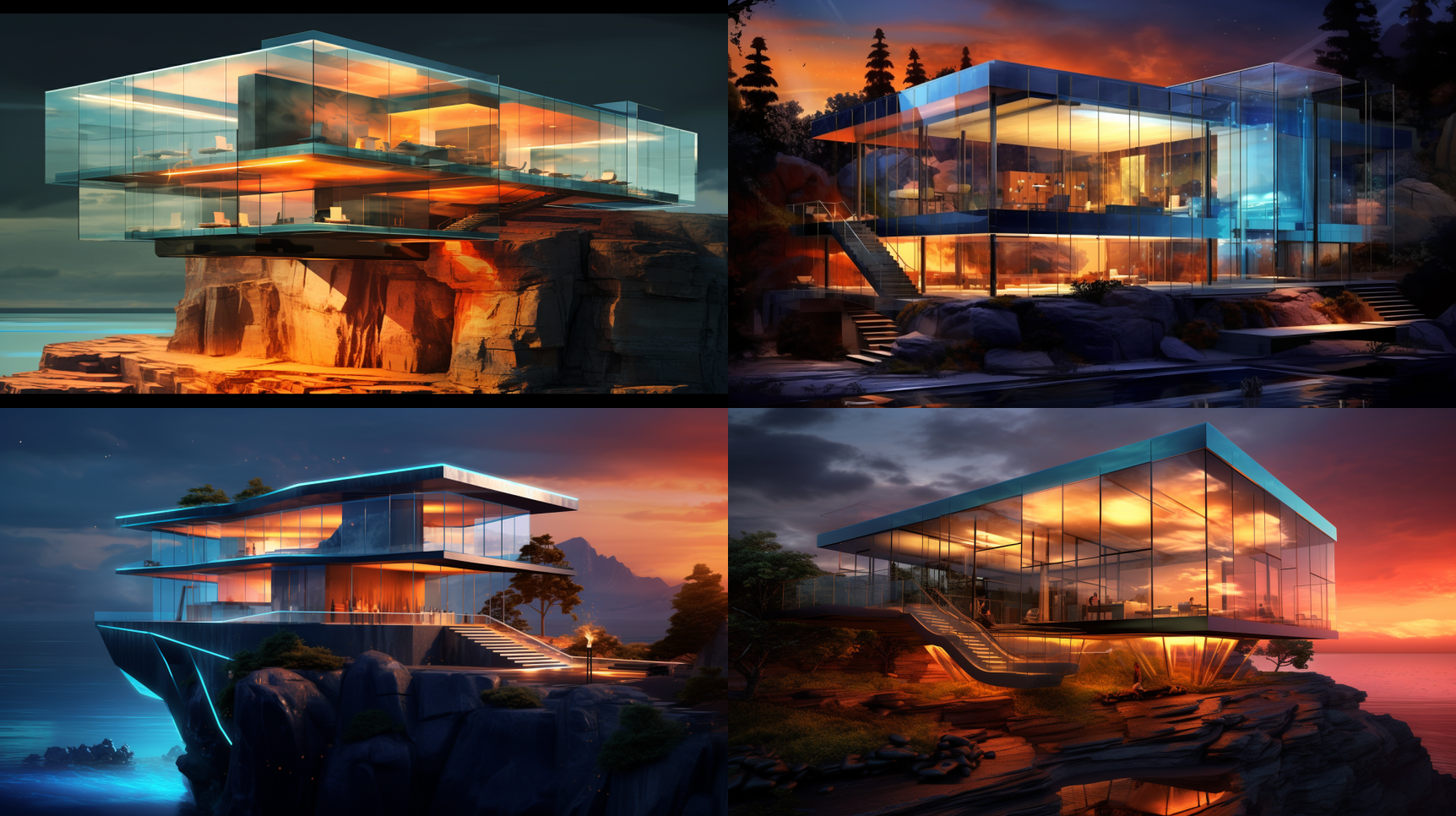 An ultra-modern glass house perched atop a cliff, medium: digital painting, style: reminiscent of the artwork in Philip Johnson's architectural designs, lighting: dynamic, changing LED lights illuminating the glass structure, colors: a sleek combination of transparent glass and metallic accents against the natural backdrop, composition: highlighting the seamless integration of nature and modern design, showcasing the house's minimalist aesthetic and breathtaking panoramic views. --ar 16:9 --v 5.1 --style raw --q 2 --s 750A majestic castle nestled on a hill, medium: digital painting, style: inspired by the artwork in Neuschwanstein Castle, lighting: golden hour sunlight casting a warm glow on the castle, colors: a mix of earthy tones and vibrant accents against the lush green landscape, composition: capturing the grandeur and fairy-tale-like quality of the castle, showcasing its breathtaking architecture and picturesque setting. --ar 16:9 --v 5.1 --style raw --q 2 --s 750An underwater villa with transparent walls, medium: digital painting, style: inspired by the artwork in the Poseidon Undersea Resort, lighting: ethereal, bioluminescent lights creating an otherworldly ambiance, colors: a mesmerizing combination of blues and greens of the surrounding underwater world, composition: capturing the tranquility and unique experience of living beneath the ocean's surface, showcasing the villa's innovative design and the beauty of marine life. --ar 16:9 --v 5.1 --style raw --q 2 --s 750A futuristic space station with panoramic views of the cosmos, medium: digital painting, style: reminiscent of the artwork in Syd Mead's futuristic concepts, lighting: dynamic, cosmic lights casting an otherworldly glow, colors: a mix of deep blues, purples, and vibrant neons against the darkness of space, composition: showcasing the sleek and cutting-edge design of the space station, emphasizing its connection to the vastness of the universe. --ar 16:9 --v 5.1 --style raw --q 2 --s 750A luxury oasis in the middle of the desert, medium: digital painting, style: inspired by the artwork in Richard Neutra's desert architecture, lighting: warm, desert sunlight creating a serene atmosphere, colors: a combination of earthy tones and vibrant accents against the sandy landscape, composition: highlighting the seamless integration of indoor and outdoor spaces, showcasing the home's modern design and the harmony between human-made structures and the surrounding desert environment. --ar 16:9 --v 5.1 --style raw --q 2 --s 750A floating skyscraper in a bustling metropolis, medium: digital painting, style: reminiscent of the artwork in Lebbeus Woods' visionary architectural concepts, lighting: vibrant, city lights illuminating the structure, colors: a mix of sleek metallic surfaces and bright accents against the urban backdrop, composition: capturing the verticality and avant-garde design of the floating skyscraper, showcasing its innovative use of space and its bold presence in the cityscape. --ar 16:9 --v 5.1 --style raw --q 2 --s 750A treehouse palace in a lush rainforest, medium: digital painting, style: inspired by the artwork in Pete Nelson's extravagant treehouse designs, lighting: dappled sunlight filtering through the dense foliage, colors: a harmonious blend of natural greens and earthy tones of the rainforest, composition: showcasing the multi-level treehouse palace, complete with bridges, balconies, and intricate architectural details, highlighting the seamless integration with nature and the whimsical charm of living among the treetops. --ar 16:9 --v 5.1 --style raw --q 2 --s 750An underground eco-dome nestled in a remote landscape, medium: digital painting, style: reminiscent of the artwork in James Turrell's earthworks, lighting: soft, natural light filtered through skylights and light wells, colors: a combination of earth tones and warm hues against the natural surroundings, composition: capturing the harmonious coexistence of the dome with the landscape, showcasing its sustainable design and energy-efficient features, creating a serene and eco-friendly living space. --ar 16:9 --v 5.1 --style raw --q 2 --s 750A floating palace on a serene lake, medium: digital painting, style: inspired by the artwork in the Taj Lake Palace, lighting: gentle, reflected sunlight creating a magical atmosphere, colors: a blend of pristine whites and pastel hues against the calm waters, composition: showcasing the intricate architecture and ornate details of the floating palace, highlighting its luxurious interiors and the tranquil beauty of its surroundings. --ar 16:9 --v 5.1 --style raw --q 2 --s 750A cliffside retreat with panoramic glass walls, medium: digital painting, style: reminiscent of the artwork in Olson Kundig's cliffside residences, lighting: warm, natural light flooding the interior, colors: a mix of earth tones and cool blues against the rugged cliff backdrop, composition: highlighting the seamless blend of indoor and outdoor living, showcasing the home's breathtaking views and the sense of serenity and connection with nature. --ar 16:9 --v 5.1 --style raw --q 2 --s 750A volcano-top sanctuary with stunning lava views, medium: digital painting, style: inspired by the artwork in the Thrihnukagigur volcano experience, lighting: fiery, glowing lava casting an intense and dramatic light, colors: a contrasting palette of fiery reds, oranges, and cool blues against the volcanic landscape, composition: showcasing the unique location and design of the sanctuary, emphasizing the unparalleled experience of living on the edge of an active volcano. --ar 16:9 --v 5.1 --style raw --q 2 --s 750A luxury oasis in the middle of a desert canyon, medium: digital painting, style: reminiscent of the artwork in Antoine Predock's desert architecture, lighting: warm, desert sunlight creating a magical glow, colors: a harmonious blend of earthy tones and vibrant accents against the canyon walls, composition: showcasing the home's seamless integra