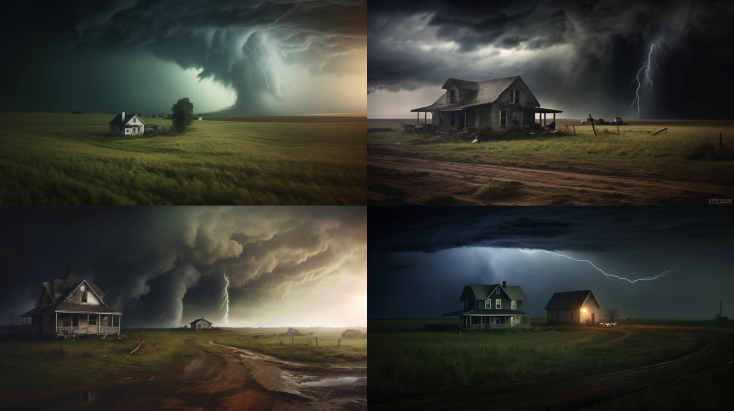 Capture the terrifying beauty of a tornado in the heartland of America. The scene should be hyper-realistic, with a focus on the swirling vortex of the tornado against a dark, ominous sky. The landscape should be flat, with a single, lonely farmhouse in the distance. The style should be reminiscent of the dramatic nature photography of Ansel Adams, with high contrast and rich, dark colors. The lighting should be dramatic, with the tornado illuminated by flashes of lightning. Use a wide-angle lens to capture the vastness of the scene, and a high shutter speed to freeze the motion of the tornado. --ar 16:9 --v 5.1 --style raw --q 2 --s 750Depict the aftermath of a forest fire, with charred trees standing stark against a smoky, orange sky. The scene should be ultra-realistic, with a focus on the details of the burnt bark and the ash-covered ground. The style should evoke the post-apocalyptic landscapes of Cormac McCarthy's "The Road", with a desaturated color palette of blacks, grays, and oranges. The lighting should be diffuse, with the sun obscured by smoke. Use a telephoto lens to focus on the details of the destruction, and a low ISO to capture the texture of the ash and charred wood. --ar 16:9 --v 5.1 --style raw --q 2 --s 750Capture the devastating power of a tsunami as it crashes into a coastal city. The scene should be hyper-realistic, with a focus on the towering wave and the buildings in its path. The style should be cinematic, reminiscent of disaster movies like "The Day After Tomorrow", with a color palette dominated by blues and grays. The lighting should be dramatic, with the wave casting long, ominous shadows over the city. Use a wide-angle lens to capture the scale of the disaster, and a high shutter speed to freeze the motion of the wave. --ar 16:9 --v 5.1 --style raw --q 2 --s 750Depict the eerie calm before a hurricane, with dark storm clouds gathering over a tranquil beach. The scene should be ultra-realistic, with a focus on the contrast between the peaceful beach and the threatening sky. The style should evoke the suspenseful atmosphere of Alfred Hitchcock's films, with a desaturated color palette of blues and grays. The lighting should be diffuse, with the sun obscured by the storm clouds. Use a telephoto lens to focus on the details of the clouds, and a low ISO to capture the texture of the sand and the water. --ar 16:9 --v 5.1 --style raw --q 2 --s 750Capture the destructive force of a volcanic eruption, with lava flowing down the side of the volcano. The scene should be hyper-realistic, with a focus on the glowing lava and the smoke-filled sky. The style should be dramatic, reminiscent of the apocalyptic landscapes in J.R.R. Tolkien's "Mordor", with a color palette dominated by reds, oranges, and blacks. The lighting should be intense, with the lava illuminating the scene. Use a wide-angle lens to capture the scale of the eruption, and a high shutter speed to freeze the motion of the lava. --ar 16:9 --v 5.1 --style raw --q 2 --s 750Depict the aftermath of an earthquake, with a cityscape of collapsed buildings and rubble. The scene should be ultra-realistic, with a focus on the details of the destruction. The style should evoke the gritty realism of war photography, with a desaturated color palette of grays and browns. The lighting should be diffuse, with the sun obscured by dust. Use a telephoto lens to focus on the details of the rubble, and a low ISO to capture the texture of the broken concrete and twisted metal. --ar 16:9 --v 5.1 --style raw --q 2 --s 750Capture the surreal beauty of an aurora borealis in the Arctic, with the natural light show reflecting off the ice. The scene should be hyper-realistic, with a focus on the swirling colors of the aurora and the icy landscape. The style should be ethereal, reminiscent of the fantasy landscapes in Hayao Miyazaki's films, with a color palette dominated by greens, blues, and purples. The lighting should be soft, with the aurora illuminating the scene. Use a wide-angle lens to capture the scale of the aurora, and a long exposure to capture the movement of the lights. --ar 16:9 --v 5.1 --style raw --q 2 --s 750Depict the desolation of a drought-stricken landscape, with cracked earth and withered plants. The scene should be ultra-realistic, with a focus on the details of the parched earth and the dried plants. The style should evoke the harsh realism of the Dust Bowl photographs of Dorothea Lange, with a desaturated color palette of browns and grays. The lighting should be harsh, with the sun casting long, stark shadows. Use a telephoto lens to focus on the details of the cracked earth, and a low ISO to capture the texture of the dried plants. --ar 16:9 --v 5.1 --style raw --q 2 --s 750Capture the chilling spectacle of an avalanche in the mountains, with snow cascading down the slopes. The scene should be hyper-realistic, with a focus on the tumbling snow and the rugged mountain landscape. The style should be dynamic, reminiscent of the action sequences in James Bond movies, with a color palette dominated by whites and blues. The lighting should be bright, with the sun reflecting off the snow. Use a wide-angle lens to capture the scale of the avalanche, and a high shutter speed to freeze the motion of the snow. --ar 16:9 --v 5.1 --style raw --q 2 --s 750Depict the eerie beauty of a foggy forest, with trees disappearing into the mist. The scene should be ultra-realistic, with a focus on the details of the trees and the fog. The style should evoke the mysterious atmosphere of the Brothers Grimm fairy tales, with a desaturated color palette of greens and grays. The lighting should be diffuse, with the sun obscured by the fog. Use a telephoto lens to focus on the details of the trees, and a low ISO to capture the texture of the fog. --ar 16:9 --v 5.1 --style raw --q 2 --s 750Capture the dramatic spectacle of a lightning storm over the ocean, with bolts of lightning illuminating the dark sky and the turbulent sea. The scen