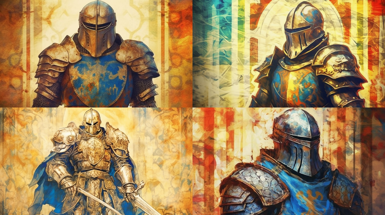 Medieval illustration of a knight in full armor, medium: digital painting, style: reminiscent of the illuminations in the Book of Kells, lighting: soft, diffused natural light creating a heroic atmosphere, colors: vibrant blues and golds of the knight's armor against a parchment-colored background, composition: created with a Wacom Cintiq 22 drawing tablet, Resolution 15360 x 8640 pixels, full body shot capturing the knight's determined expression and the intricate details of his armor, focus on the knight's shield and the stylized dragon emblem. --ar 16:9 --v 5.1 --style raw --q 2 --s 750Medieval illustration of a castle siege, medium: digital painting, style: inspired by the Bayeux Tapestry, lighting: harsh, direct sunlight creating a dramatic effect, colors: muted colors of the stone and metal against a bright blue sky, composition: created with a Wacom Cintiq 22 drawing tablet, Resolution 15360 x 8640 pixels, wide-angle view capturing the chaos of the siege and the imposing facade of the castle, focus on the soldiers' expressions and the flying arrows. --ar 16:9 --v 5.1 --style raw --q 2 --s 750Medieval illustration of a jousting tournament, medium: digital painting, style: reminiscent of the illuminations in the Très Riches Heures du Duc de Berry, lighting: soft, diffused natural light creating a festive atmosphere, colors: vibrant colors of the knights' banners against a crowd-filled background, composition: created with a Wacom Cintiq 22 drawing tablet, Resolution 15360 x 8640 pixels, wide-angle view capturing the excitement of the tournament and the grandeur of the pavilion, focus on the knights' lances and the spectators' reactions. --ar 16:9 --v 5.1 --style raw --q 2 --s 750Medieval illustration of a queen in her throne room, medium: digital painting, style: inspired by the Gothic art in the Psalter of Eleanor of Aquitaine, lighting: warm, diffused light from the stained glass windows creating a regal atmosphere, colors: rich reds and golds of the throne room against the queen's pale skin, composition: created with a Wacom Cintiq 22 drawing tablet, Resolution 15360 x 8640 pixels, full body shot capturing the queen's majestic presence and the opulence of the room, focus on the queen's crown and the intricate architectural details. --ar 16:9 --v 5.1 --style raw --q 2 --s 750Medieval illustration of a monk in a scriptorium, medium: digital painting, style: reminiscent of the illuminations in the Lindisfarne Gospels, lighting: soft, diffused candlelight creating a focused atmosphere, colors: muted colors of the parchment and ink against the monk's brown robe, composition: created with a Wacom Cintiq 22 drawing tablet, Resolution 15360 x 8640 pixels, close-up shot capturing the monk's concentration and the intricate details of his work, focus on the monk's hands and the illuminated manuscript. --ar 16:9 --v 5.1 --style raw --q 2 --s 750Medieval illustration of a dragon attacking a village, medium: digital painting, style: inspired by the marginalia in the Luttrell Psalter, lighting: harsh, direct firelight creating a chaotic effect, colors: vibrant oranges and reds of the fire against the dark night sky,composition: created with a Wacom Cintiq 22 drawing tablet, Resolution 15360 x 8640 pixels, wide-angle view capturing the terror of the villagers and the ferocity of the dragon, focus on the dragon's scales and the burning buildings. --ar 16:9 --v 5.1 --style raw --q 2 --s 750Medieval illustration of a saint in prayer, medium: digital painting, style: reminiscent of the icons in the Book of Kells, lighting: soft, diffused divine light creating a serene atmosphere, colors: vibrant blues and golds of the saint's robe against a simple background, composition: created with a Wacom Cintiq 22 drawing tablet, Resolution 15360 x 8640 pixels, full body shot capturing the saint's devout expression and the stylized halo, focus on the saint's face and the illuminated manuscript in his hands. --ar 16:9 --v 5.1 --style raw --q 2 --s 750Medieval illustration of a king holding court, medium: digital painting, style: inspired by the Gothic art in the Maciejowski Bible, lighting: warm, diffused light from the chandeliers creating a regal atmosphere, colors: rich reds and golds of the court against the king's vibrant attire, composition: created with a Wacom Cintiq 22 drawing tablet, Resolution 15360 x 8640 pixels, wide-angle view capturing the king's authority and the grandeur of the court, focus on the king's crown and the courtiers' expressions. --ar 16:9 --v 5.1 --style raw --q 2 --s 750Medieval illustration of a witch in a forest, medium: digital painting, style: reminiscent of the illuminations in the Carmina Burana, lighting: dim, diffused moonlight casting eerie shadows, colors: muted greens and browns of the forest against the witch's dark robe, composition: created with a Wacom Cintiq 22 drawing tablet, Resolution 15360 x 8640 pixels, full body shot capturing the witch's mysterious presence and the gnarled trees, focus on the witch's face and the bubbling cauldron. --ar 16:9 --v 5.1 --style raw --q 2 --s 750Medieval illustration of a lady in her private chamber, medium: digital painting, style: reminiscent of the illuminations in the Tres Riches Heures du Duc de Berry, lighting: soft, diffused natural light creating a peaceful atmosphere, colors: soft whites and blues of the lady's dress against a richly decorated background, composition: created with a Wacom Cintiq 22 drawing tablet, Resolution 15360 x 8640 pixels, full body shot capturing the lady's graceful posture and the opulence of the room, focus on the lady's face and the embroidered tapestry. --ar 16:9 --v 5.1 --style raw --q 2 --s 750Medieval illustration of a blacksmith at work, medium: digital painting, style: inspired by the marginalia in the Luttrell Psalter, lighting: harsh, direct firelight illuminating the blacksmith against a dark background, colors: vibrant oranges and reds of the fire against the blacksmith's soot-covered